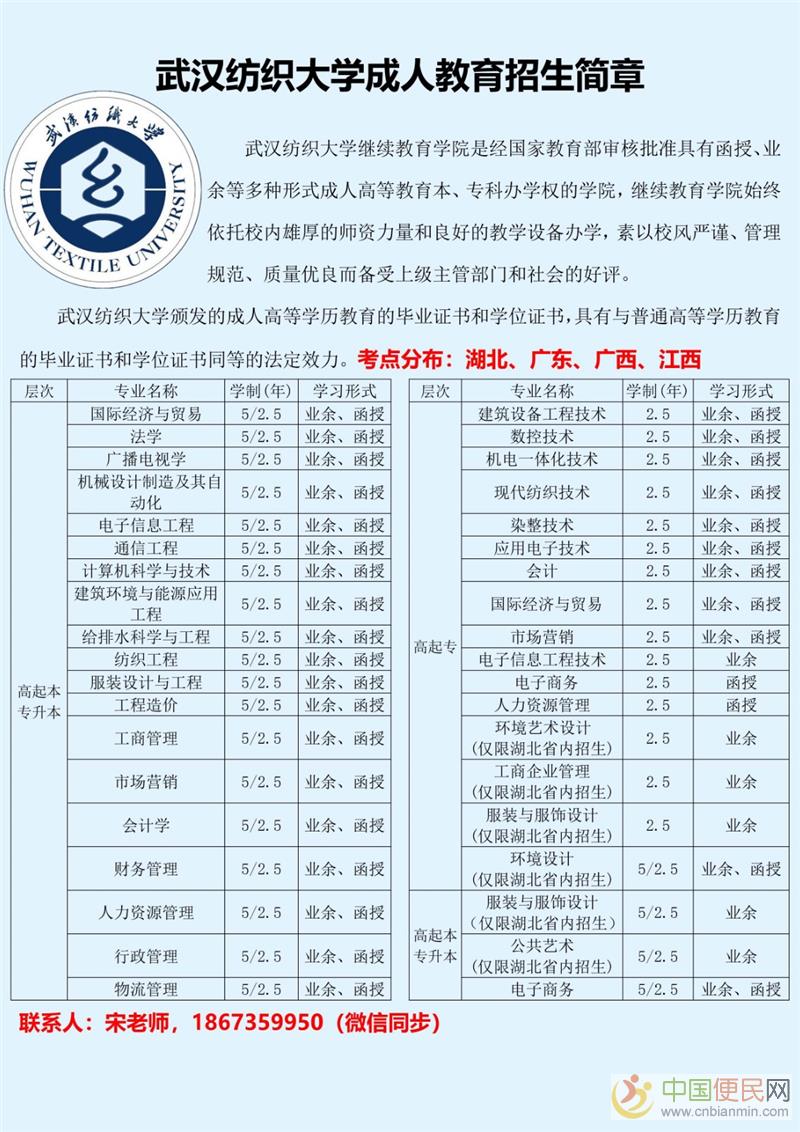 国际经济与贸易,法学,广播电视学,机械设计制造及其自动化,电子信息工程,通信工程,计算机科学与技术,建筑环境与能源应用工程,给排水科学与工程,纺织工程,服装设计与工程,工程造价,工商管理,市场营销,会计学,财务管理,人力资源管理,行政管理,物流管理,电子商务,环境设计(仅限湖北省内招生),服装与服饰设计(仅限湖北省内招生),公共艺术(仅限湖北省内招生)c+n+b+i+a+n+m+i+n+c+o+m